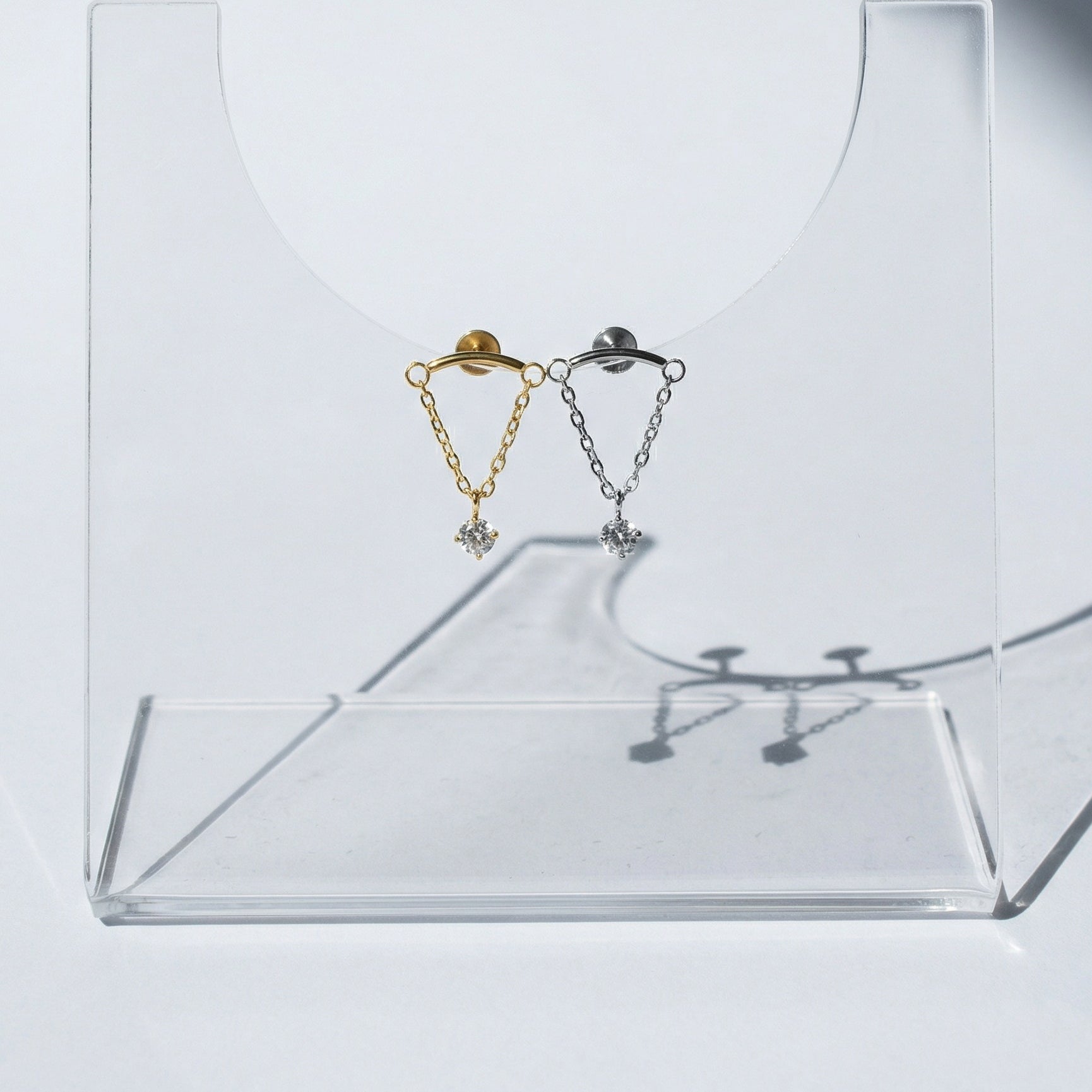 Elevate your ear curation with the Celestial ZC Draped Flat Back. Featuring a delicate draped chain that catches the light with every move, finished with a brilliant-cut crystal charm. Designed for both style and comfort, the flat-back design sits flush against the skin—making it the perfect "forever piece" you can sleep, shower, and live in.