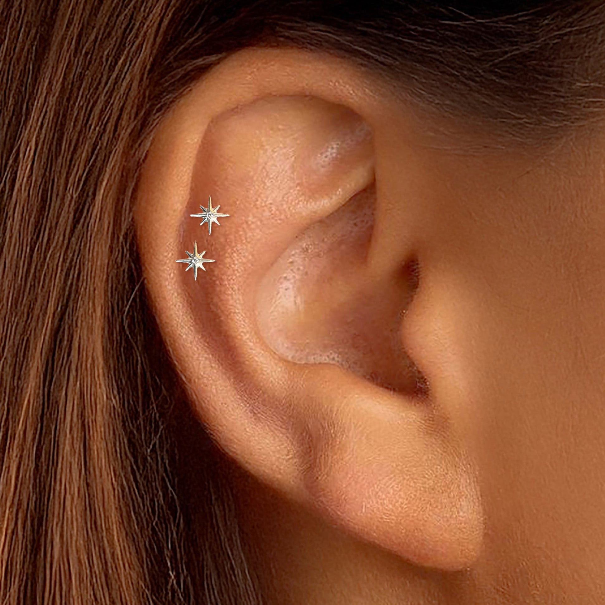Starburst Titanium Labret Stud Earrings · Helix Jewelry · Tragus Jewelry · Conch Jewelry · Rook Jewelry · Rook · Helix Piercing · Tragus Piercing · Rook Piercing · Conch Piercing · Piercing · Nose Ring · Cartilage Jewelry · 16ga 18ga · 5-10mm Implant Grade
